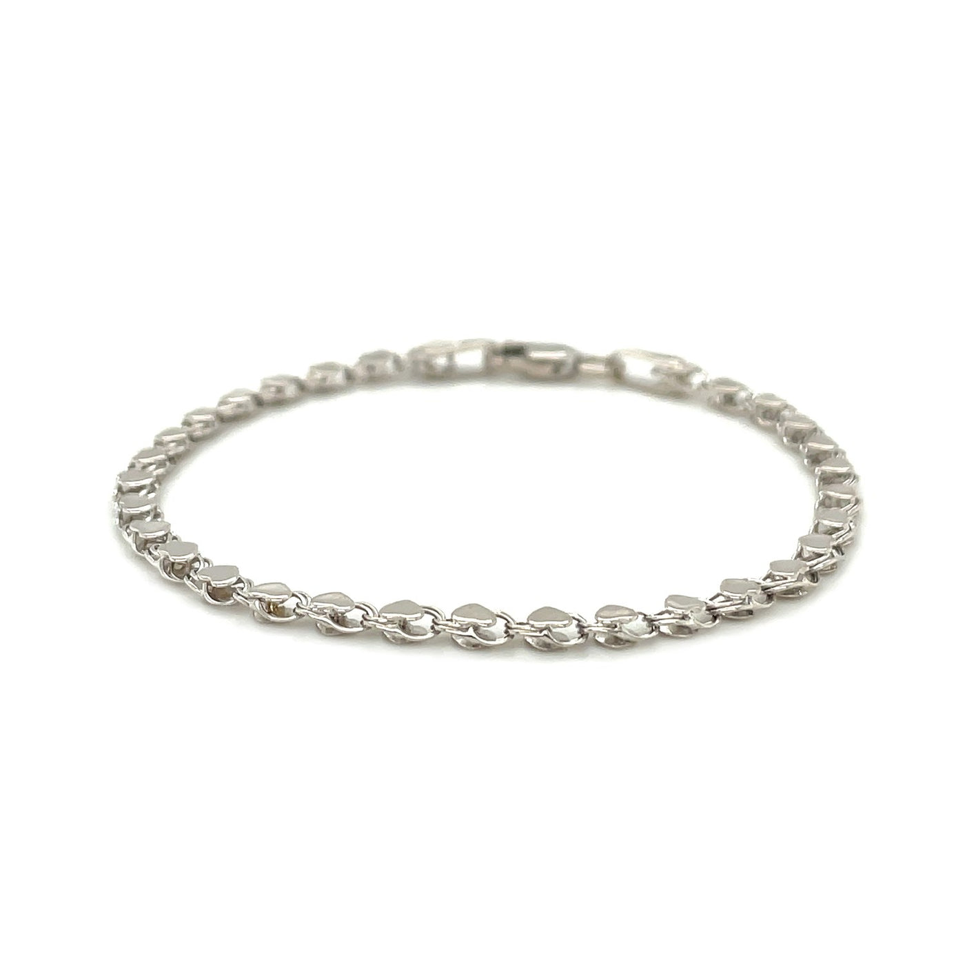 14k White Gold Heart Bracelet (3.00 mm)