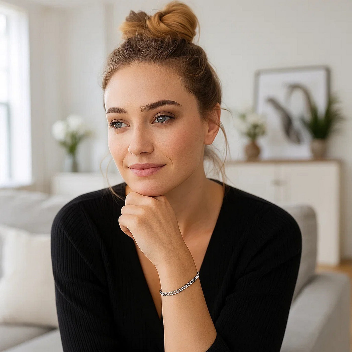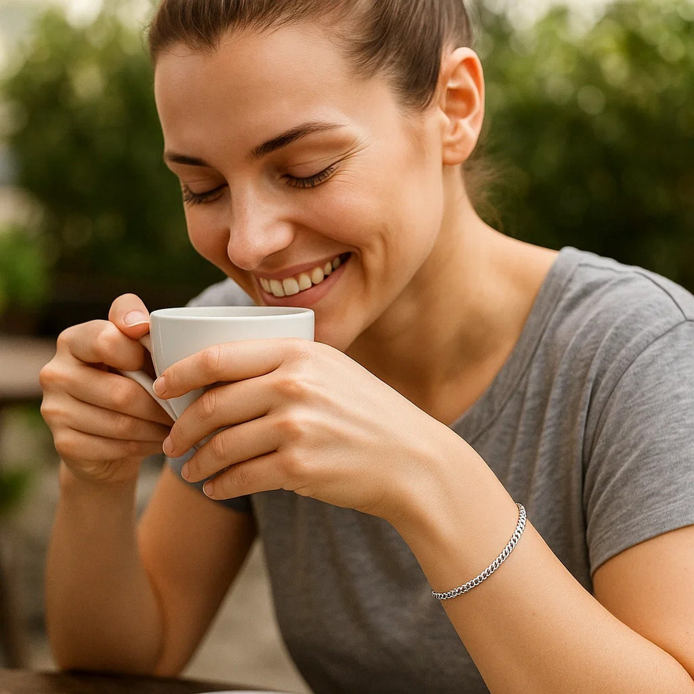 This solid curb bracelet comes in 14k white gold and has a width of 3.6 millimeters. Secured with a lobster...