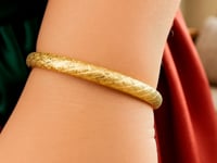 14k Yellow Gold Diamond Cut Design Dome Motif Childrens Bangle (5.50 mm)