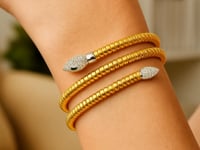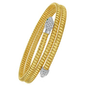 Slip into refined luxury with this 14K yellow gold Snake-Style Tubogas bangle. Expertly crafted in a flexible, wrap-around Tubogas design, it’s polished to a high shine and adorned with 0.42 carats of sparkling diamonds for a subtle yet stunning sparkle. A seamless, clasp-free cuff that combines comfort and sophistication — perfect for elevating any outfit or layering with other bracelets.