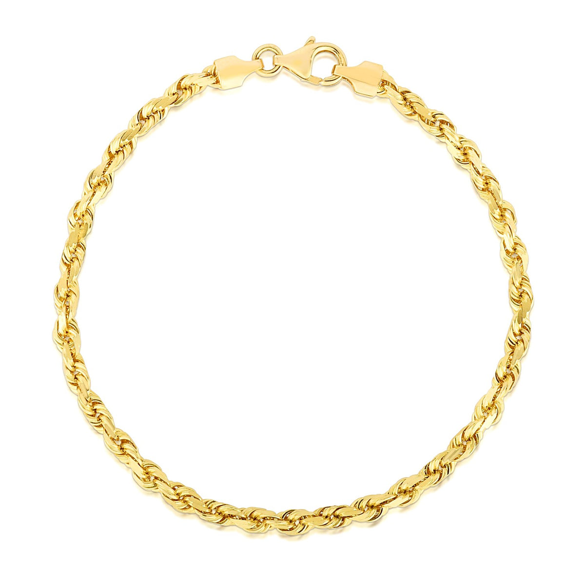 This solid diamond cut rope bracelet chain comes in 14k yellow gold and has a width of 4.0 millimeters. Secured...