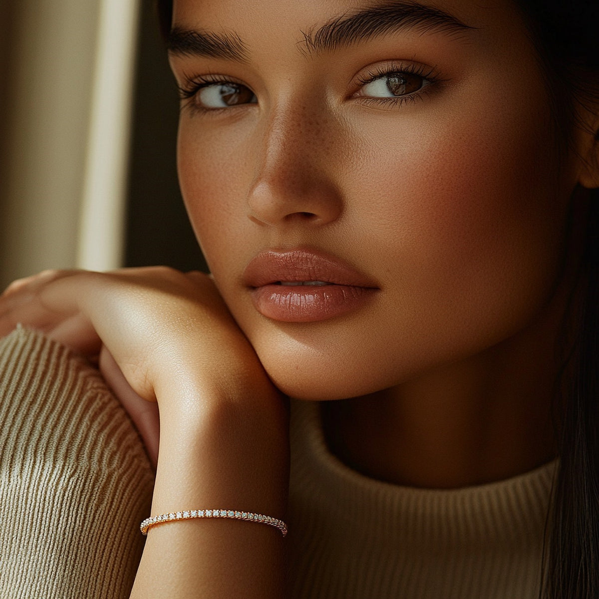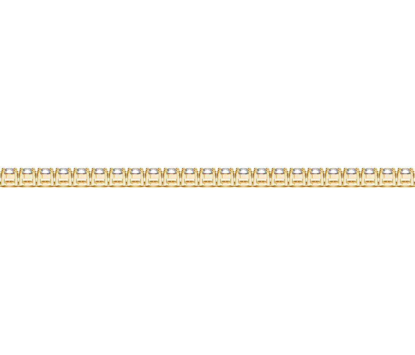 Classic four prong 2 carat total weight diamond tennis bracelet showcasing perfectly matched brilliant round cut lab grown diamonds set in 14k yellow gold.