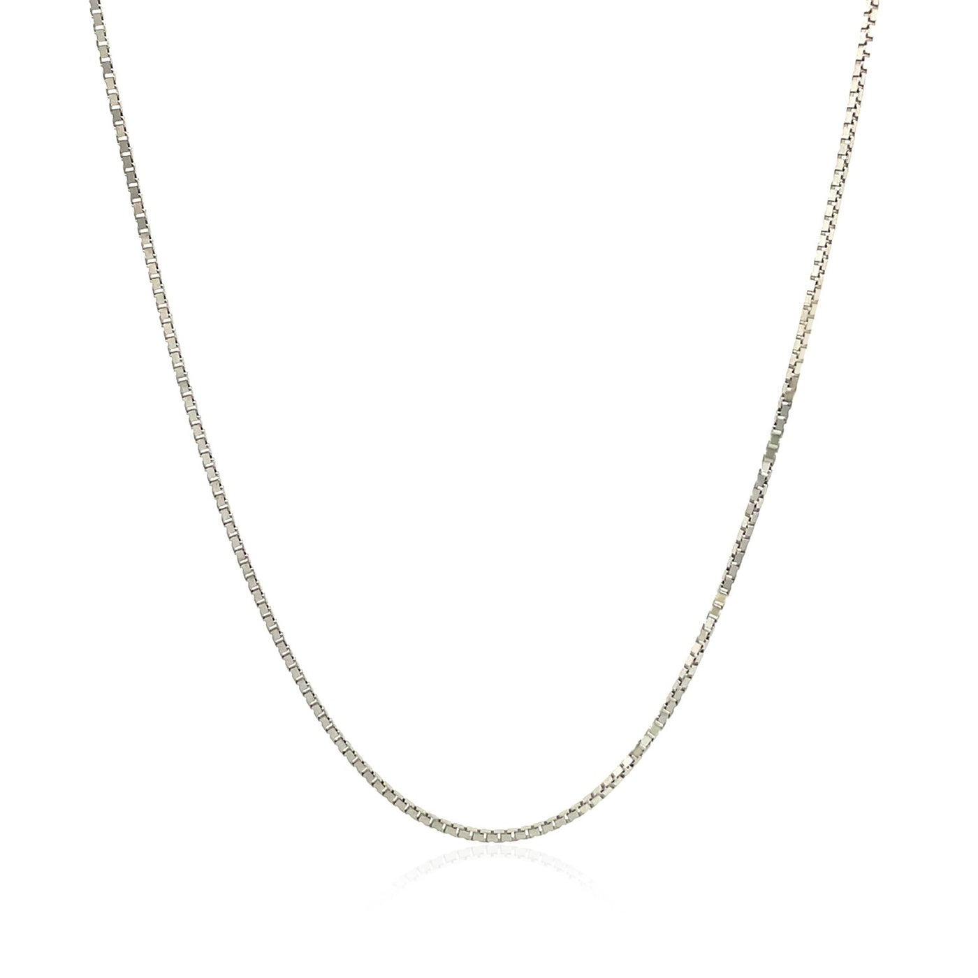 This classic box chain comes in 10k white gold and has a width of 0.78 millimeters.