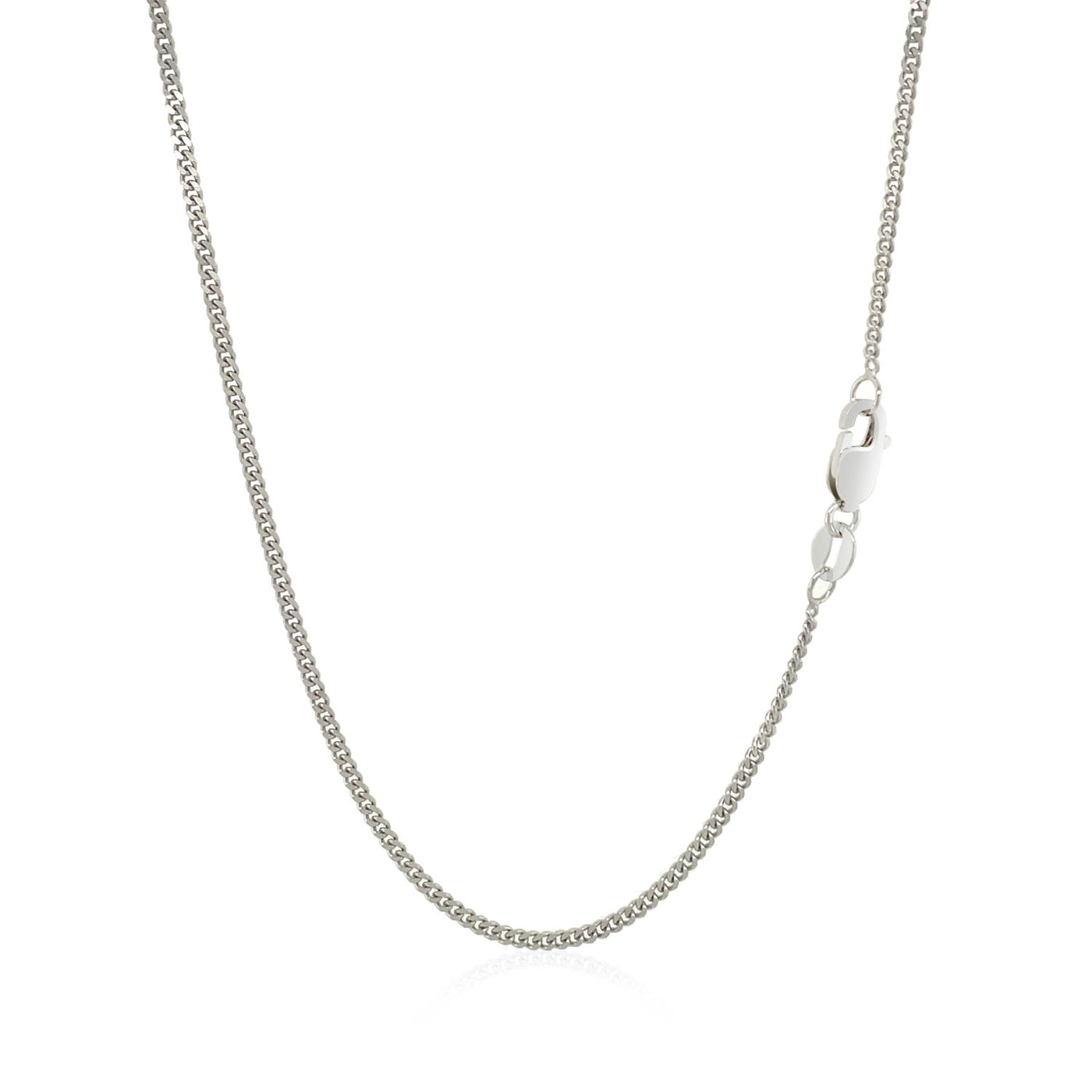 This gourmette chain comes in 10k white gold and has a width of 1.40 millimeters.