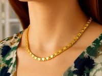 This heart chain comes in 14k yellow gold and has a width of 3.20 millimeters.