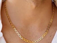 This mariner link chain comes in 14k yellow gold and has a width of 3.20 millimeters.