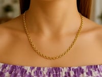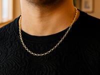 This oval rolo chain comes in 14k yellow gold and has a width of 3.2 millimeters.