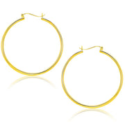 These timeless hoop earrings are crafted in 10k yellow gold and measure 40 millimeters in diameter, featuring a snap lock backing.