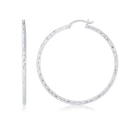 Classic Diamond Cut Hoop Earrings in 14k White Gold (2x45mm)