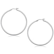 These timeless hoop earrings crafted in 14k white gold and measure 50 millimeters in diameter, featuring a snap lock backing.