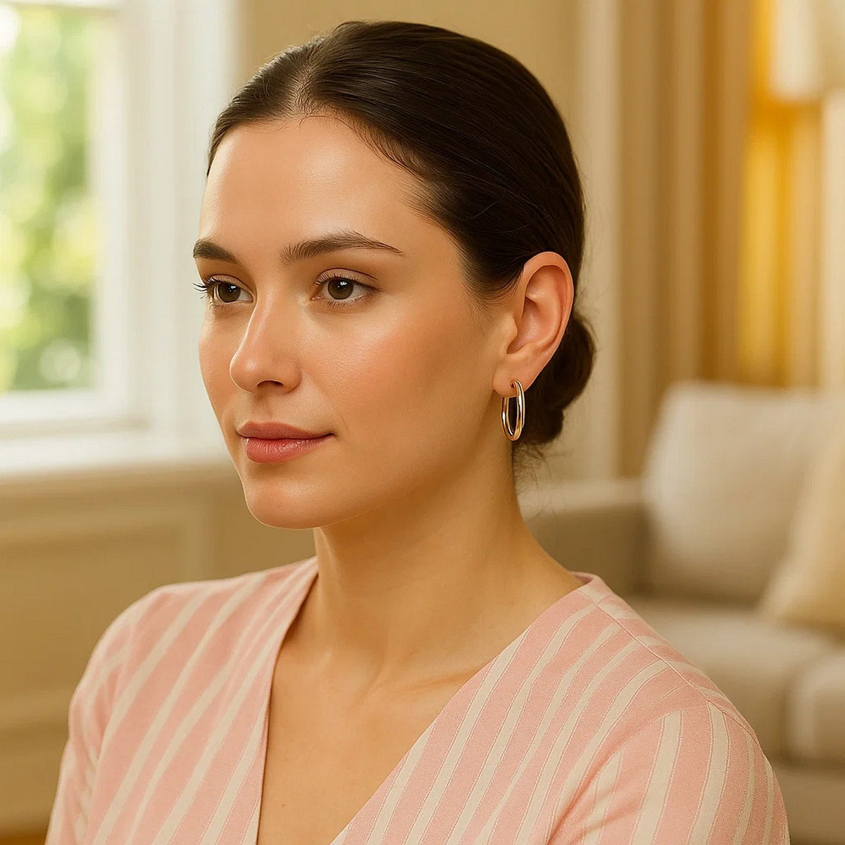 These timeless hoop earrings crafted in 14k white gold and measure 20 millimeters in diameter, featuring a snap lock backing.