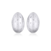 Diamond-cut kisses dance across the surface of these pebble shaped earrings. Providing a lively contrast, the precision texture imparts a tailored appearance to an organic form.