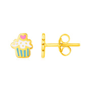 Show your sweet side when you wear these happy 14k yellow gold cupcake earrings, decorated beautifully with enamel. Post earrings are held in place by pushback clasps.