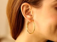 Our extra-large classic hoop earrings get a fancy treatment with a combination polish. The bright finish contrasted with areas of matte satin, highlighted with precision diamond cuts for added sparkle. Snap-lock closures keep them secure. The slender profile makes these expertly crafted earrings ideal for everyday wear.