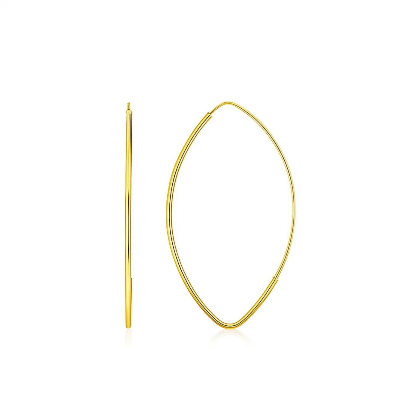 An elegant marquise shape combines with polished 14k yellow gold to create these bold, majestic hoop earrings. Earrings are 35mm long and held in place by slide clasps.