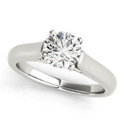 An elegant and straightforward cathedral designed round prong set solitaire ring exuding style and sophistication made of 14k white gold.