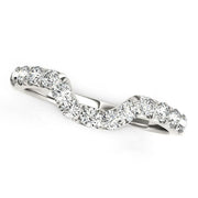 This gorgeous round diamond wedding ring features a curved design and an elegant style. Made of 14k white gold.