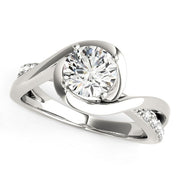 This round bypass style diamond ring features a split shank design with small diamonds down the shank. Beautifully crafted in fine 14k white gold.