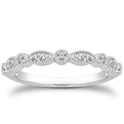 14k White Gold Vintage Look Fancy Pave Diamond Milgrain Wedding Ring Band