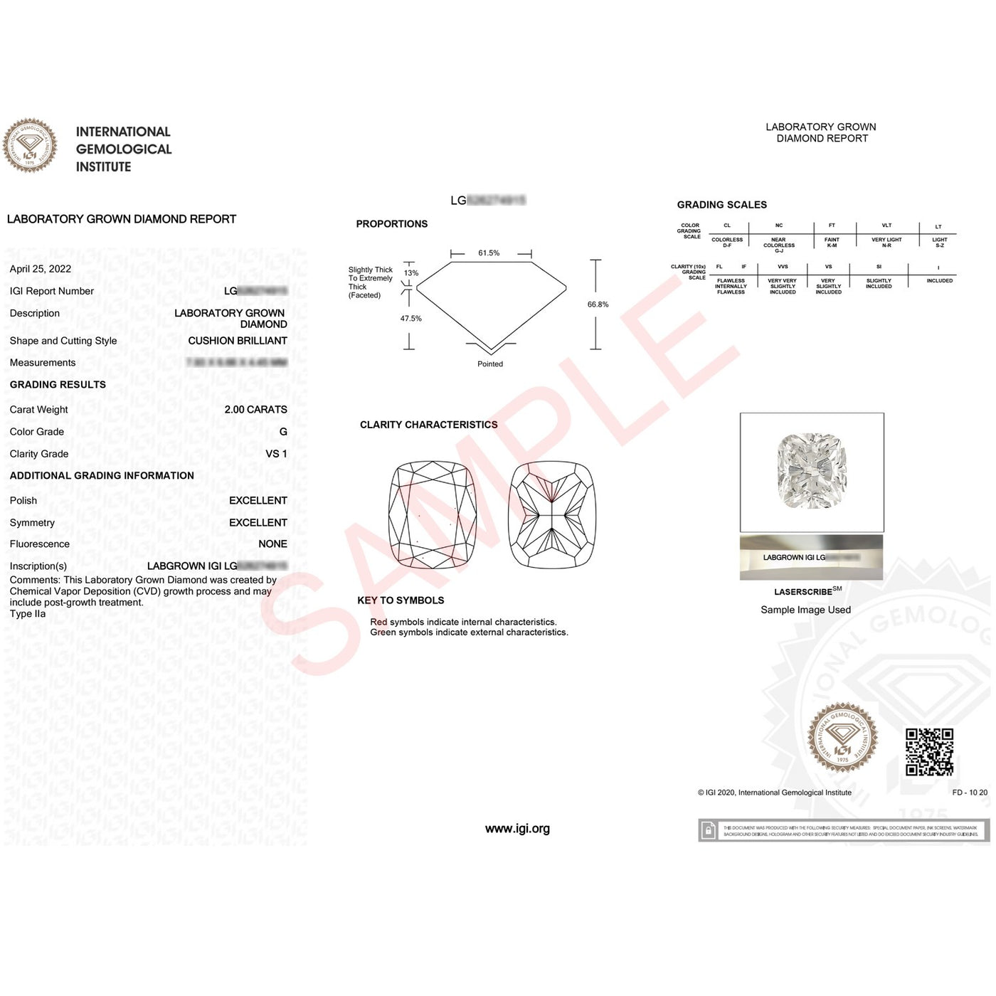 2 Carat Cushion Lab Grown IGI G/VS1 Diamond Solitaire Ring in 14K White Gold - 3 / White Gold