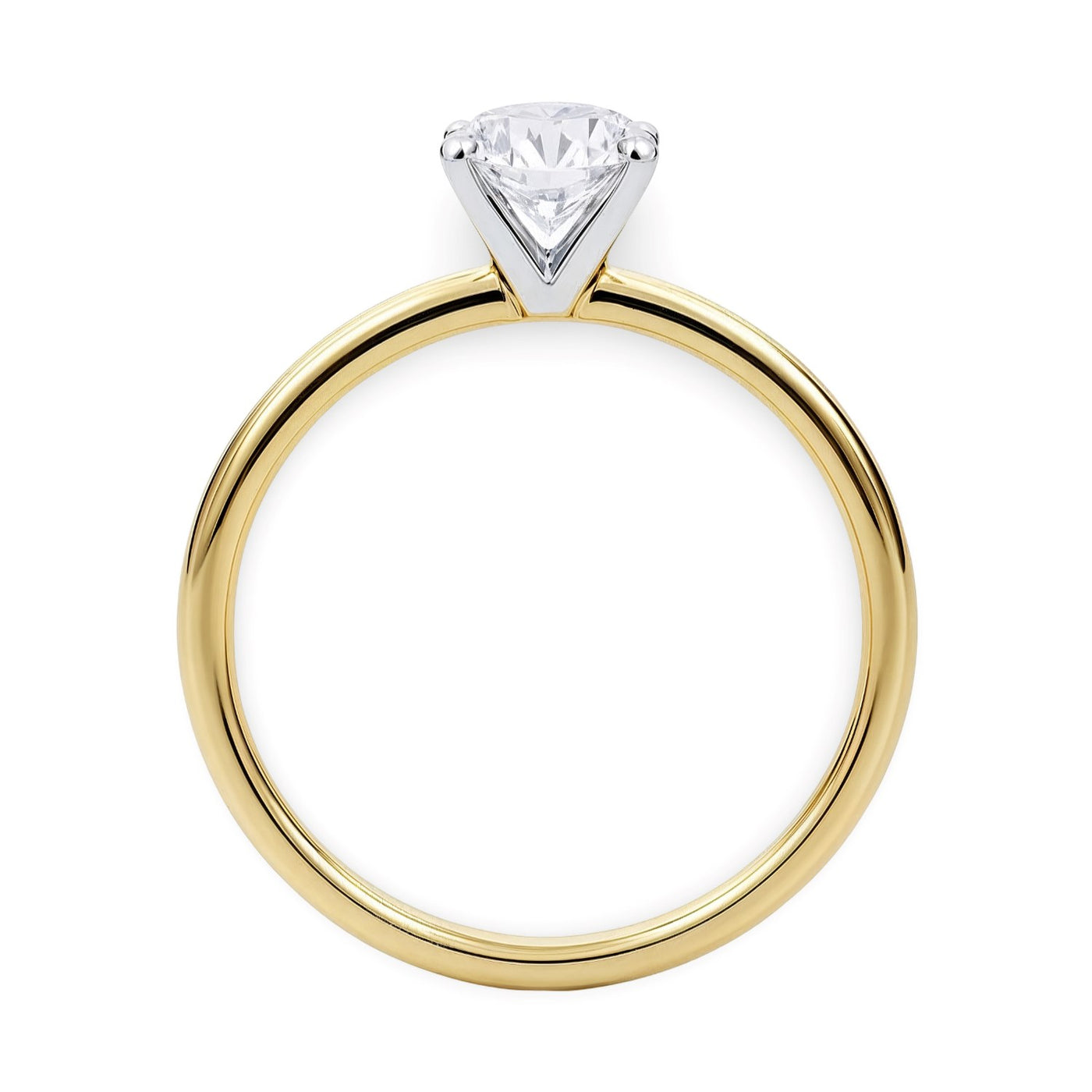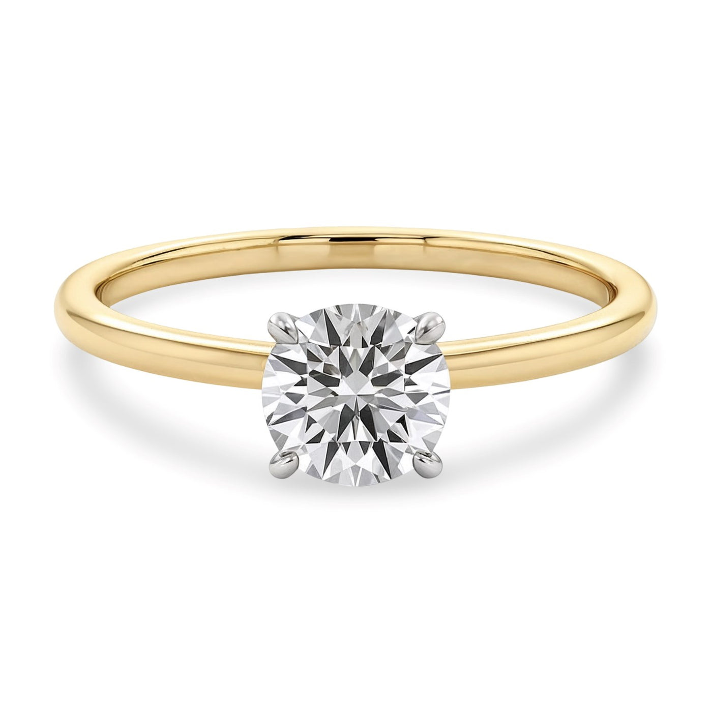 Make your moment unforgettable with this 3/4 carat round ideal-cut lab-grown diamond solitaire ring designed to shine for a lifetime. IGI certified with G color and VS1 clarity, this diamond offers exceptional brilliance and quality you can trust. The stone is securely set in a classic four-prong 14K white gold head, beautifully paired with a polished 14K yellow gold band for a timeless look with elegant contrast. Perfect for proposals, anniversaries, or meaningful milestones, this ring is crafted to celebrate life’s most cherished moments.