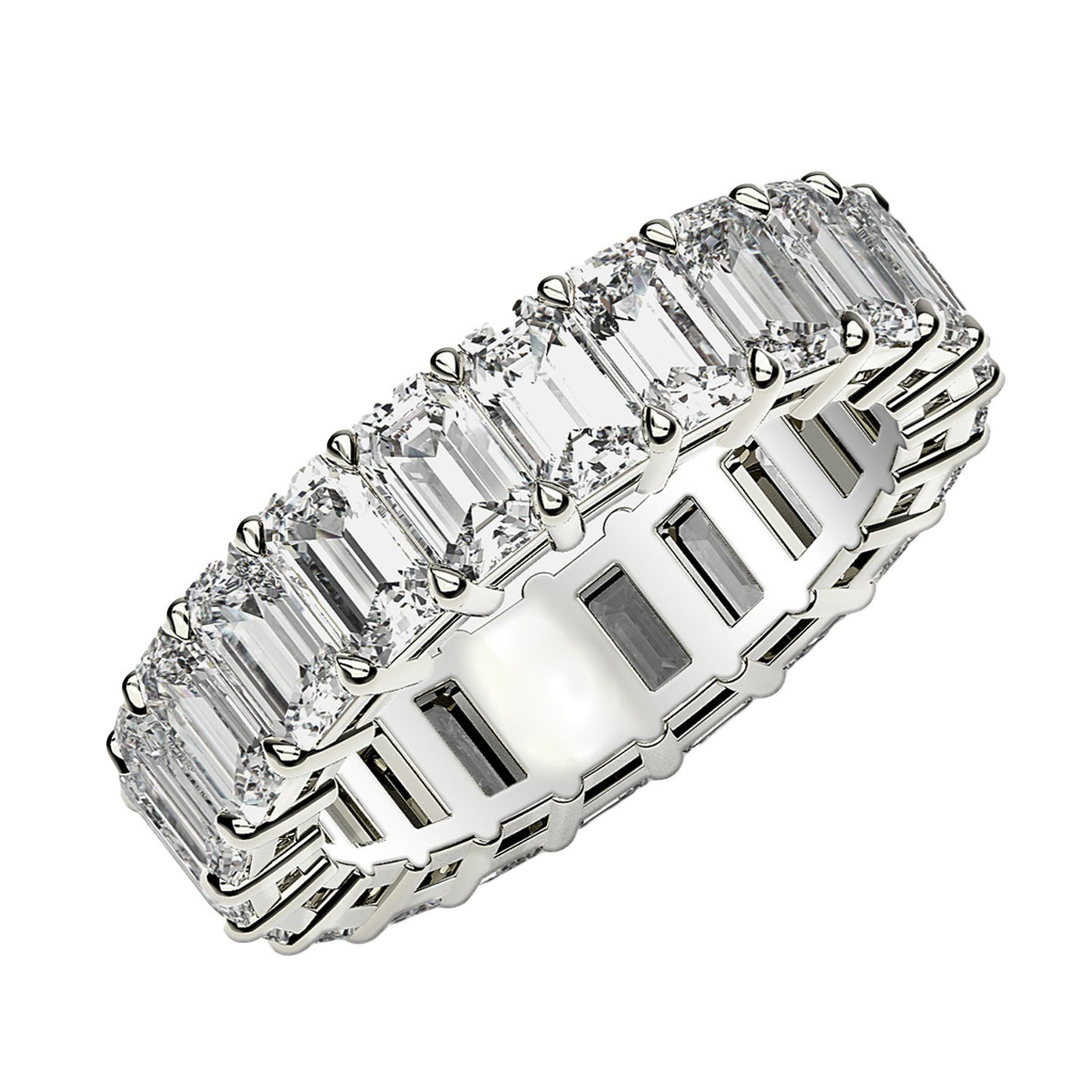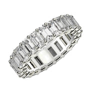 This dramatic eternity band features the traditional shine of 14k white gold, and the unparalleled sophistication of beautiful prong-set emerald cut lab grown diamonds. The light it radiates is as eternal and bright as the emotion it symbolizes.