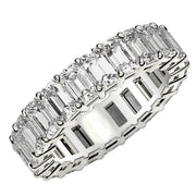 This dramatic eternity band features the traditional shine of 14k white gold, and the unparalleled sophistication of beautiful prong-set emerald cut lab grown diamonds. The light it radiates is as eternal and bright as the emotion it symbolizes.