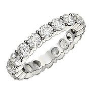 This beautiful eternity ring features the elegant simplicity of brilliant round cut lab grown diamonds in a classic, common prong style setting in 14k white gold. A timeless and sincere statement of love, it will be cherished for years to come.