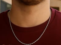 Cette chaîne de Singapour est en or blanc 14 carats et a une largeur de 1,30 millimètre.