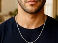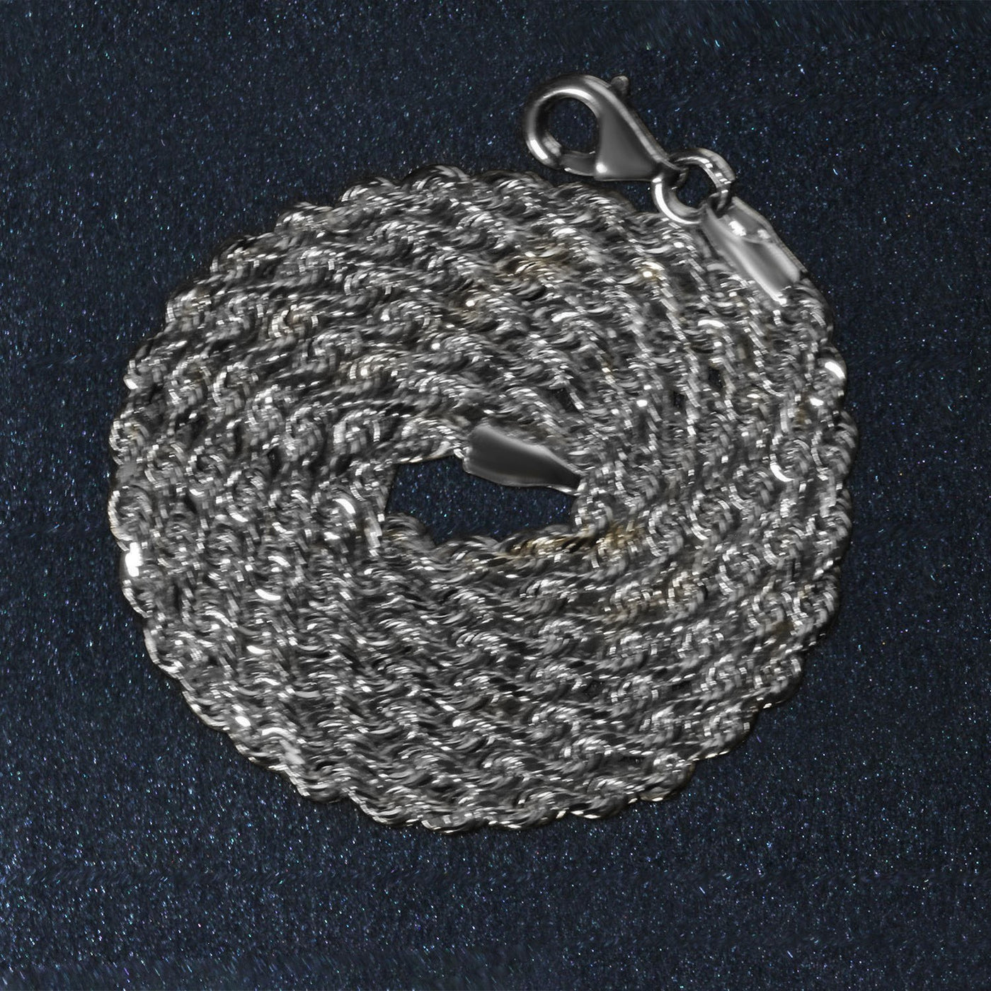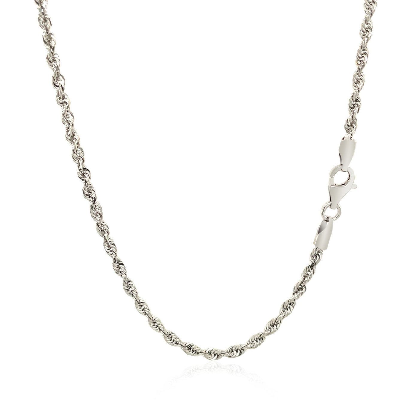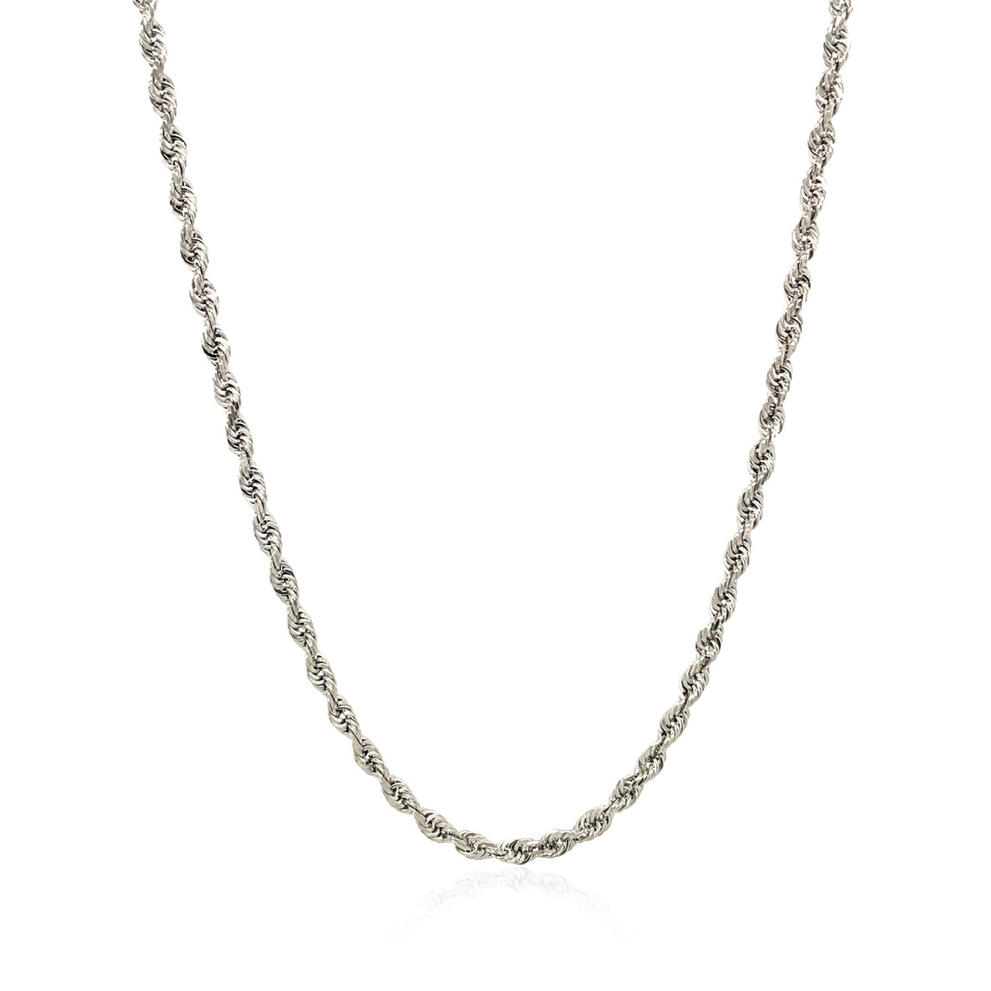 Cette chaîne corde massive à facettes diamantées est en or blanc 14 carats et a une largeur de 2,5 millimètres.