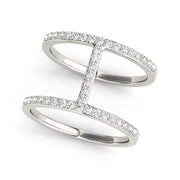 D'une beauté envoûtante, cette bague double anneau est ornée d'une barrette supérieure et sertie de magnifiques diamants pavés. Un véritable bijou de charme en or blanc 14 carats.