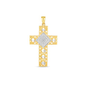 Pendentif croix en or bicolore 14 carats poli miroir et taillé en diamant