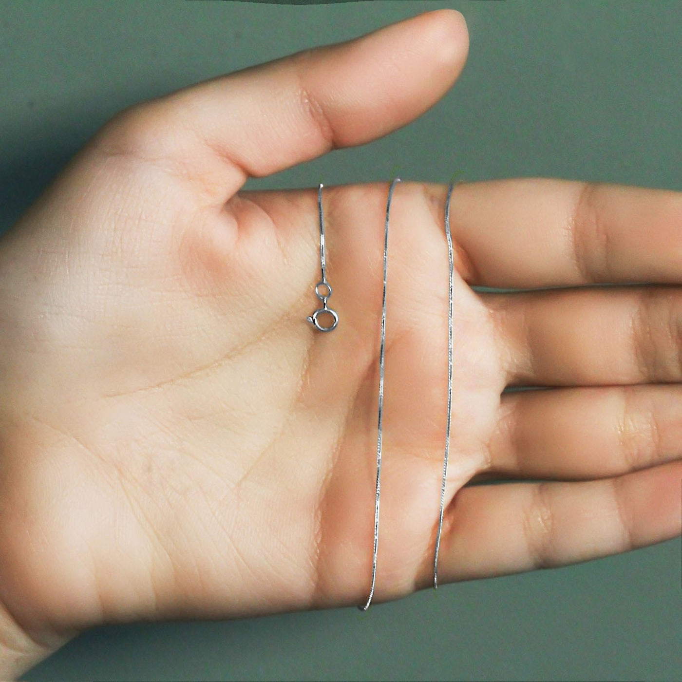 Deze klassieke boxketting is gemaakt van 14 karaat witgoud en heeft een breedte van 0,45 millimeter.