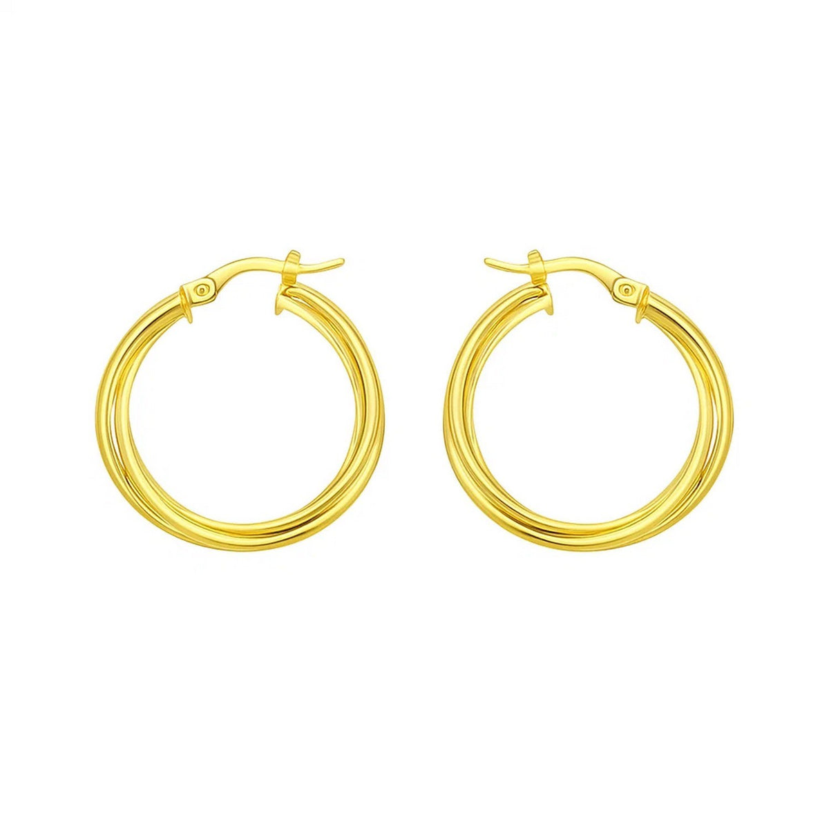 Verhoog je elegantie met deze in elkaar grijpende, middelgrote trinity-oorbellen van 14-karaats geelgoud. Met een gepolijste afwerking en een veilige scharniersluiting geven deze oorringen een verfijnde draai aan een klassiek ontwerp. Perfect voor zowel dagelijks gebruik als speciale gelegenheden, voegen ze een vleugje tijdloze schoonheid toe aan elke outfit.