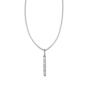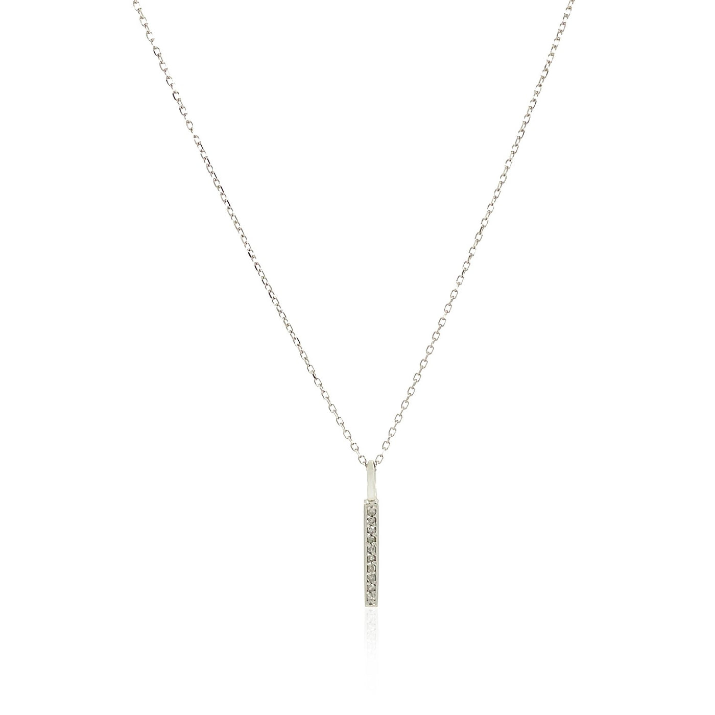 Een klassieke en prachtige staaf met diamanten siert deze elegante hanger van 14-karaats witgoud. De hanger is 45 cm lang en sluit met een karabijnsluiting. Het totale gewicht aan diamanten is 0,05 karaat.