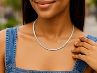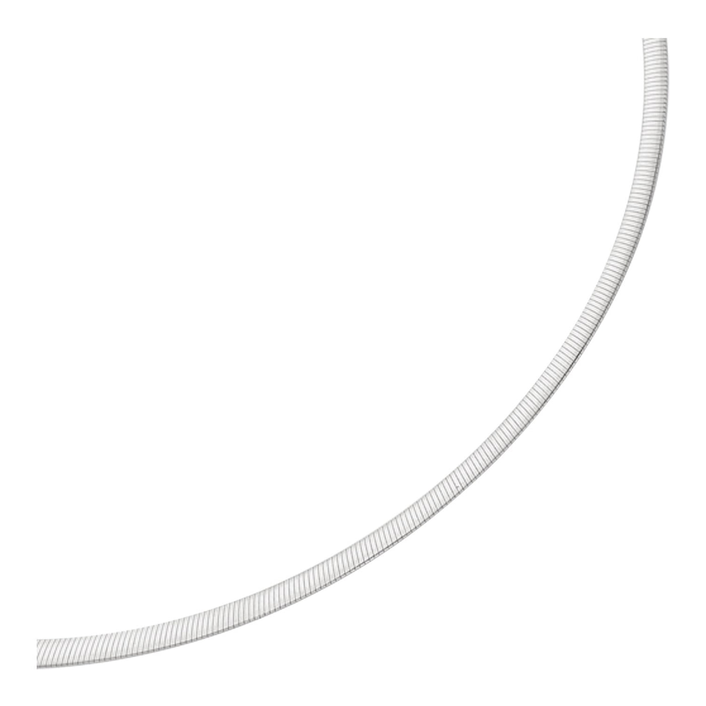 Deze omkeerbare omega-ketting is gemaakt van glanzend 14-karaats tweekleurig goud en heeft een breedte van 4,0 millimeter. De ene kant is gemaakt van echt 14-karaats geelgoud en de andere kant van echt 14-karaats witgoud. De ketting wordt gesloten met een veiligheidssluiting.