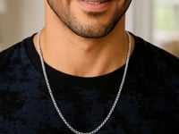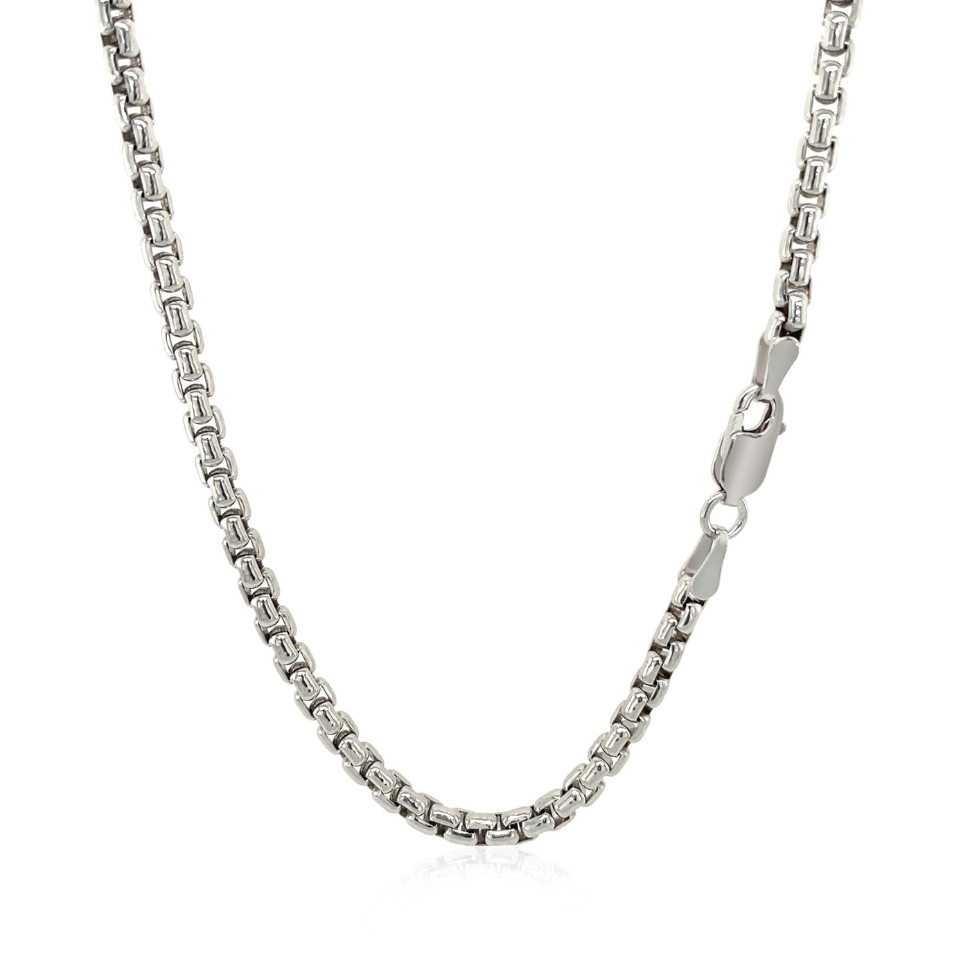 Deze ronde, rhodium-geplateerde schakelketting is gemaakt van sterlingzilver en heeft een breedte van 3,0 millimeter.