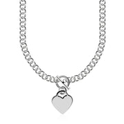 Prachtig vervaardigde, rhodium-geplateerde sterling zilveren ketting in rolo-stijl. Deze schattige ketting is voorzien van een plat hartje met een slotje en is verkrijgbaar in 45 cm.