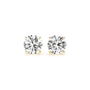 Four prong 14k yellow gold stud earrings feature two perfectly matched IGI certified lab grown round cut diamonds with a total weight of 4 carat. Secured with push backs.