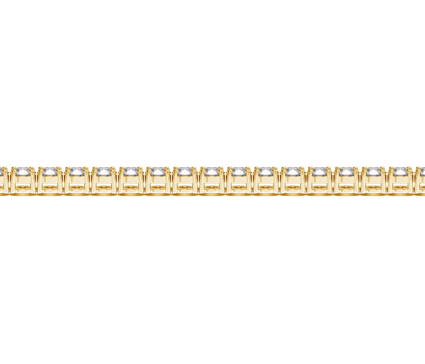 Classic four prong 7 carat total weight diamond tennis bracelet showcasing perfectly matched brilliant round cut lab grown diamonds set in 14k yellow gold.