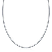 The sophisticated omega design highlights the sleek beauty of this sterling silver necklace. Available in sizes 16 inches and 18 inches, this piece is secured with a classic lobster lock.