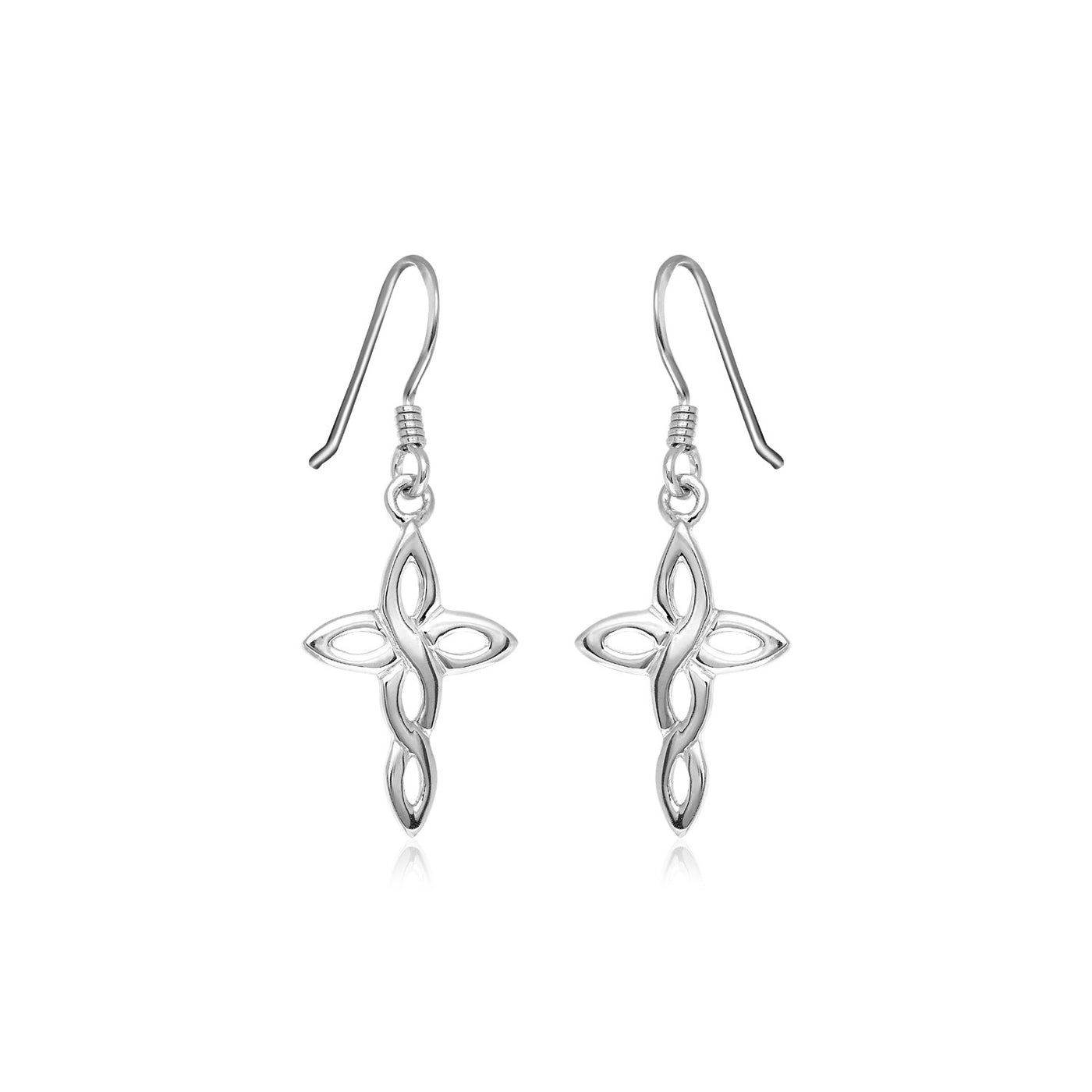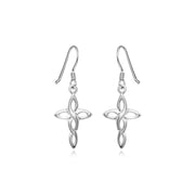 These sweet, light sterling silver earrings merge a traditional cross shape and an intricate Celtic knot-inspired motif. Earrings hang from Euro wires.