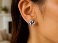 Sweet, polished love knots adorn these beautiful and versatile sterling silver earrings. Post earrings are 10mm in diameter and are held in place by pushback clasps.