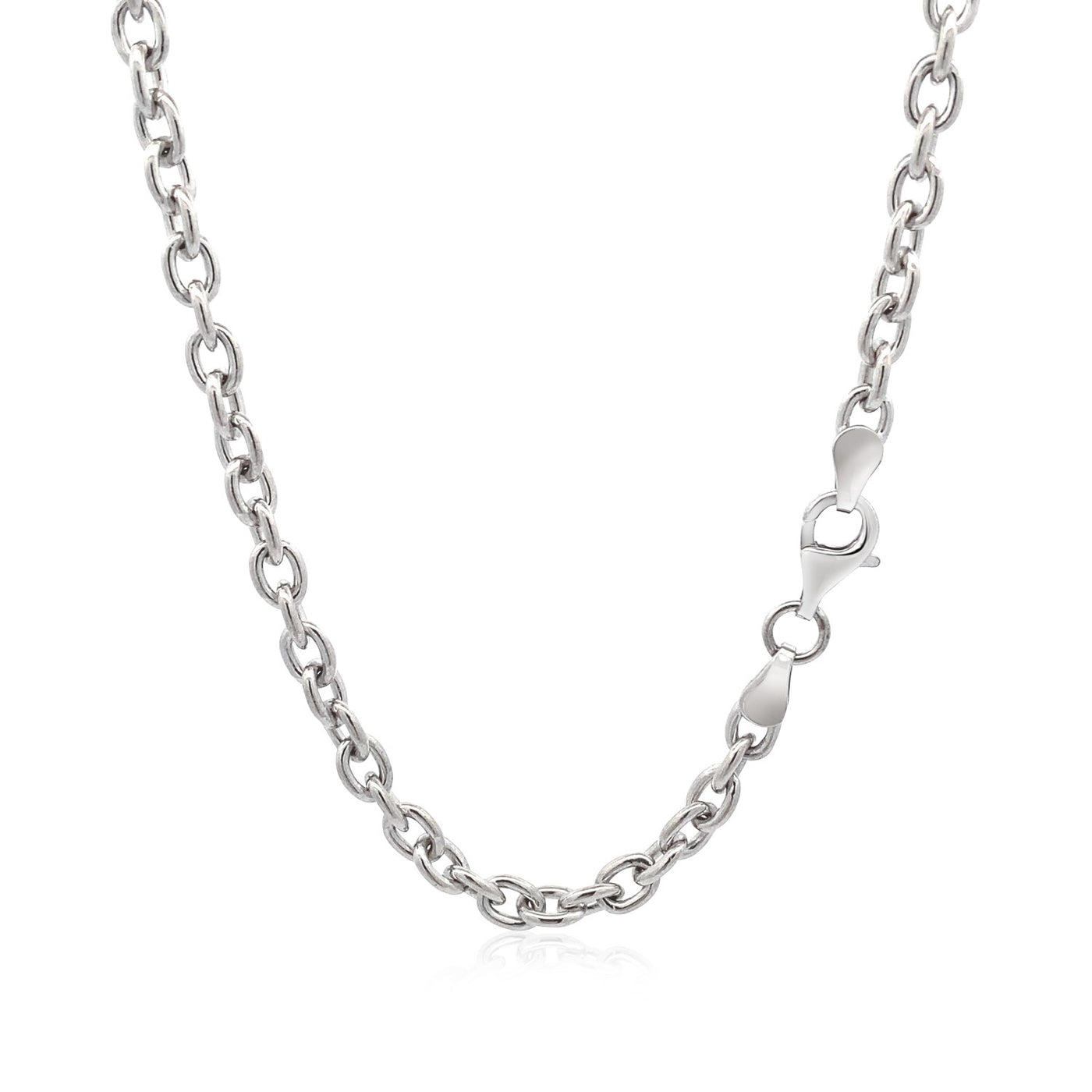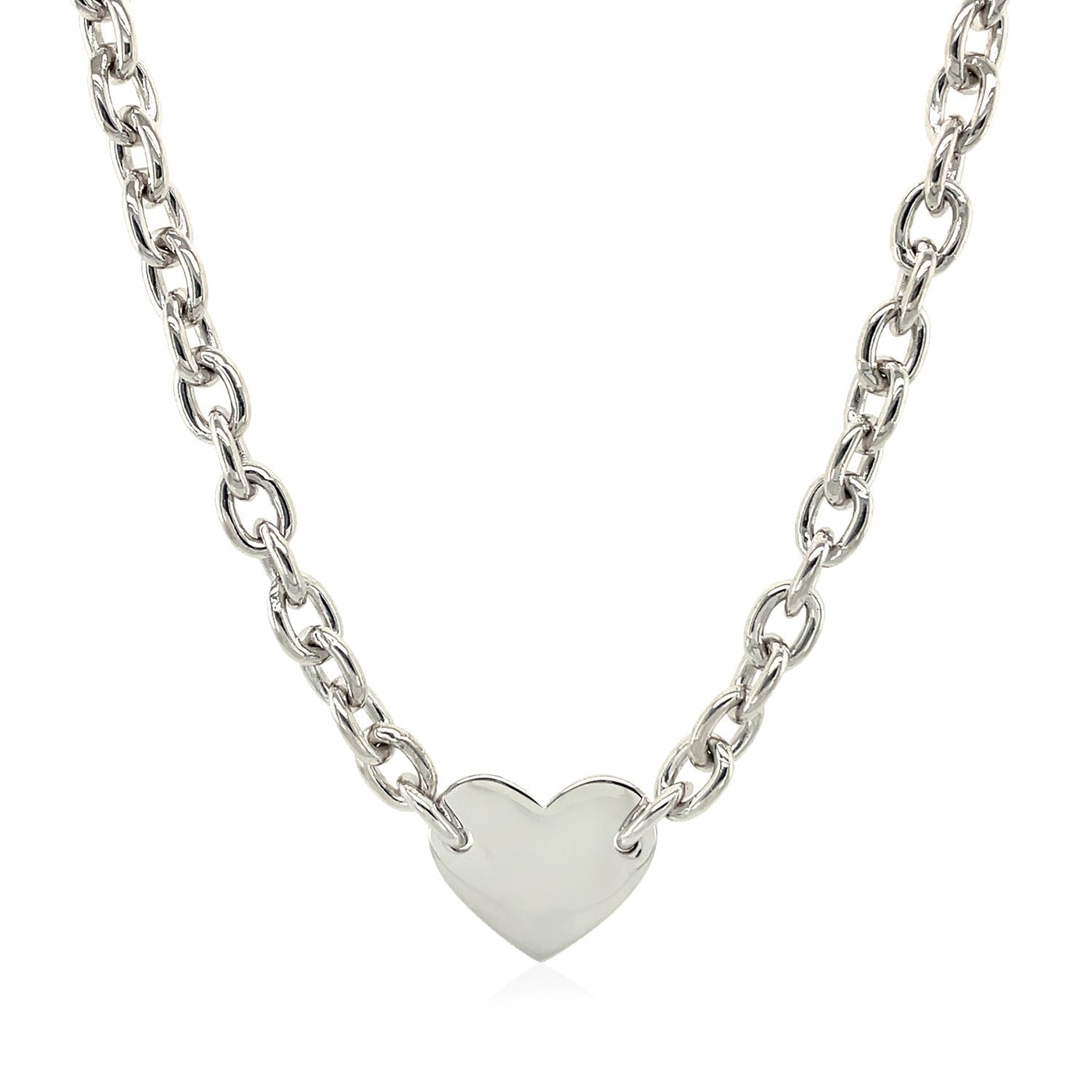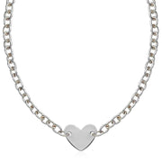 Sterling Silver Rhodium Plated Chain Bracelet with a Flat Heart Motif Station - 18'' / Sterling Silver