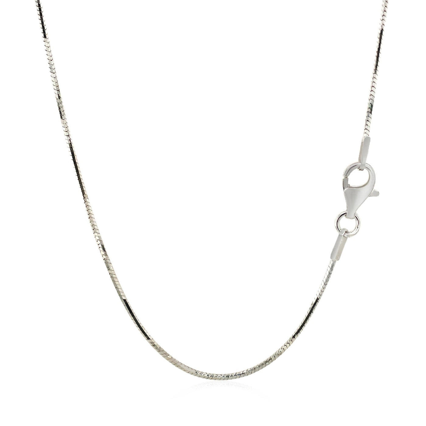 This rhodium-plated octagonal snake chain comes in sterling silver and has a width of 1.10 millimeters.Product Details: Chain Information :...