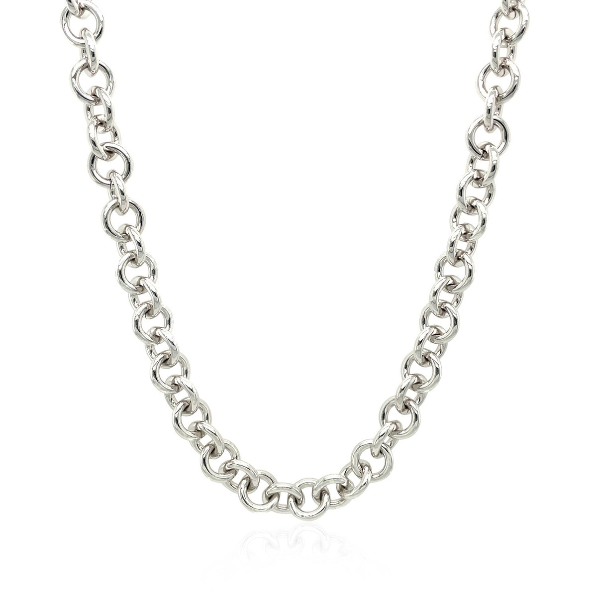 Sterling Silver Rhodium Plated Rolo Chain Necklace with a Heart Toggle Charm