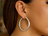 Sterling Silver Rhodium Plated Thick Large Polished Hoop Design Earrings(4x40mm) - Sterling Silver