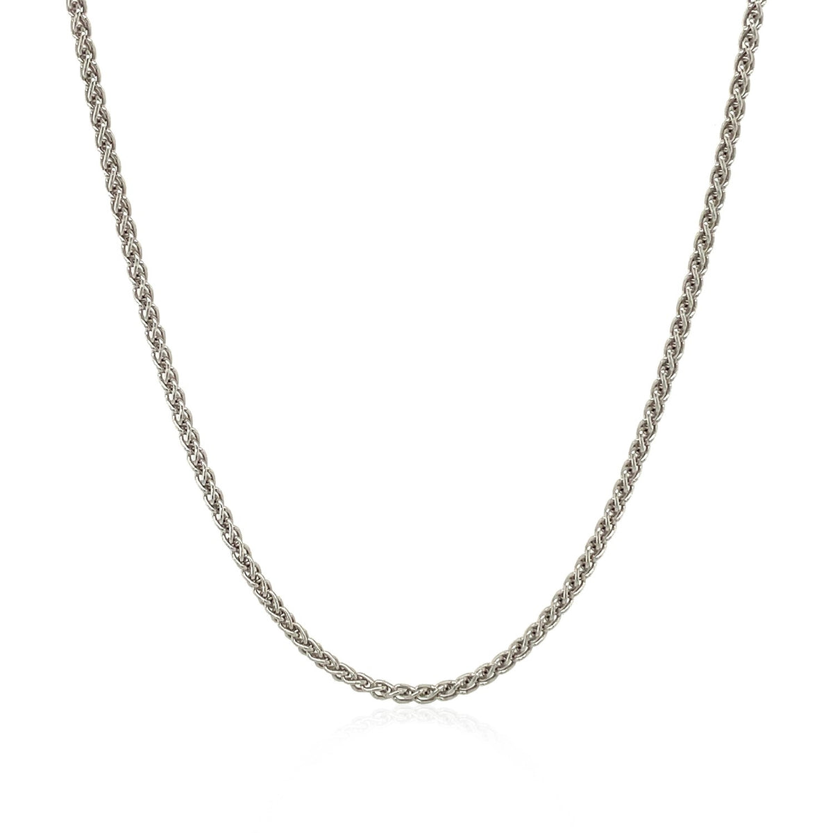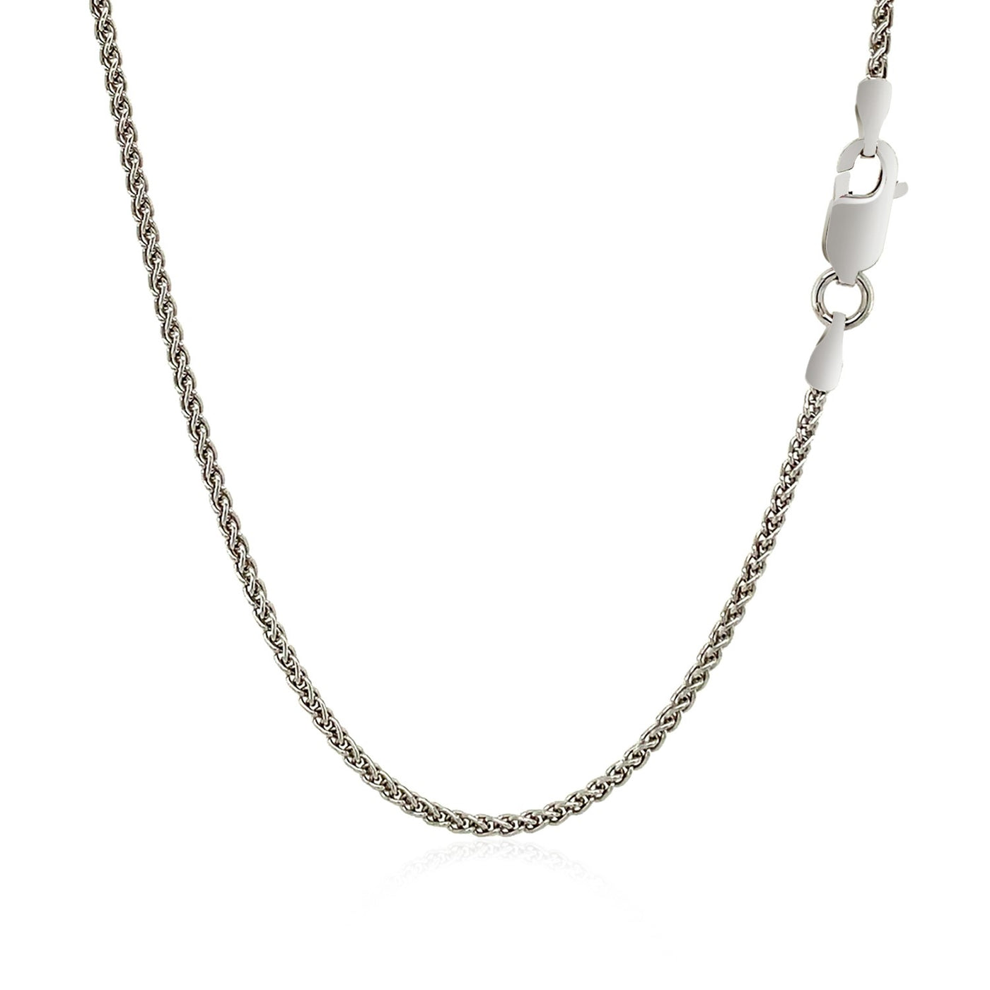 This rhodium-plated wheat chain comes in sterling silver and has a width of 1.3 millimeters.Product Details: Chain Information : Metal...