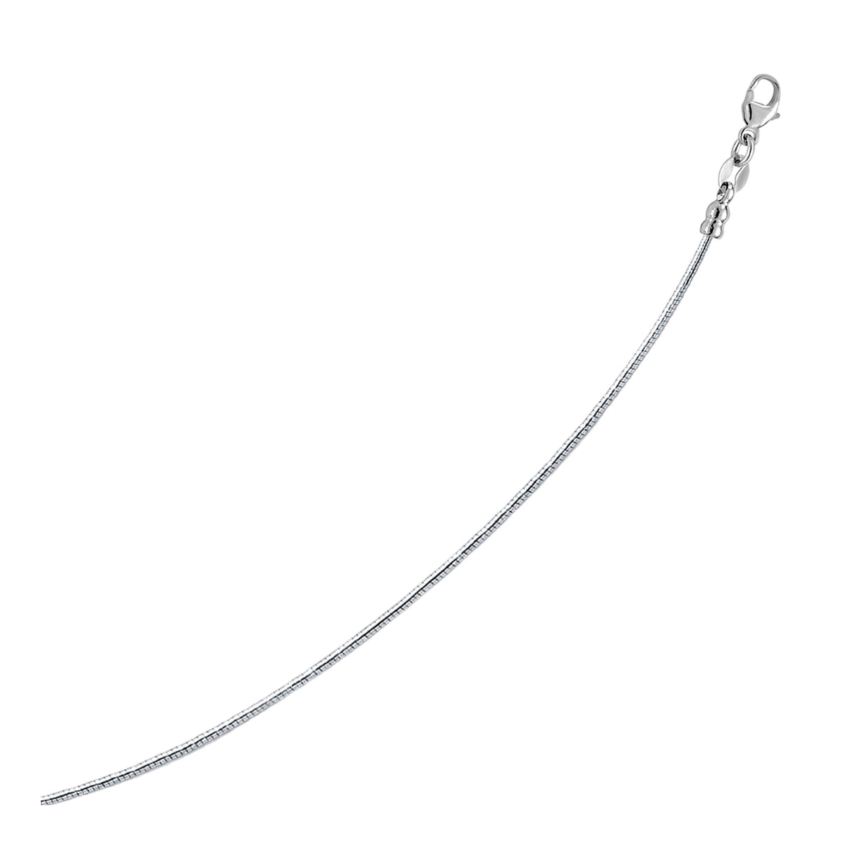 Sterling Silver Round Omega Style Chain Necklace with Rhodium Plating (1.55mm)