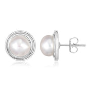 Sterling Silver Round Polished Earrings with Pearl